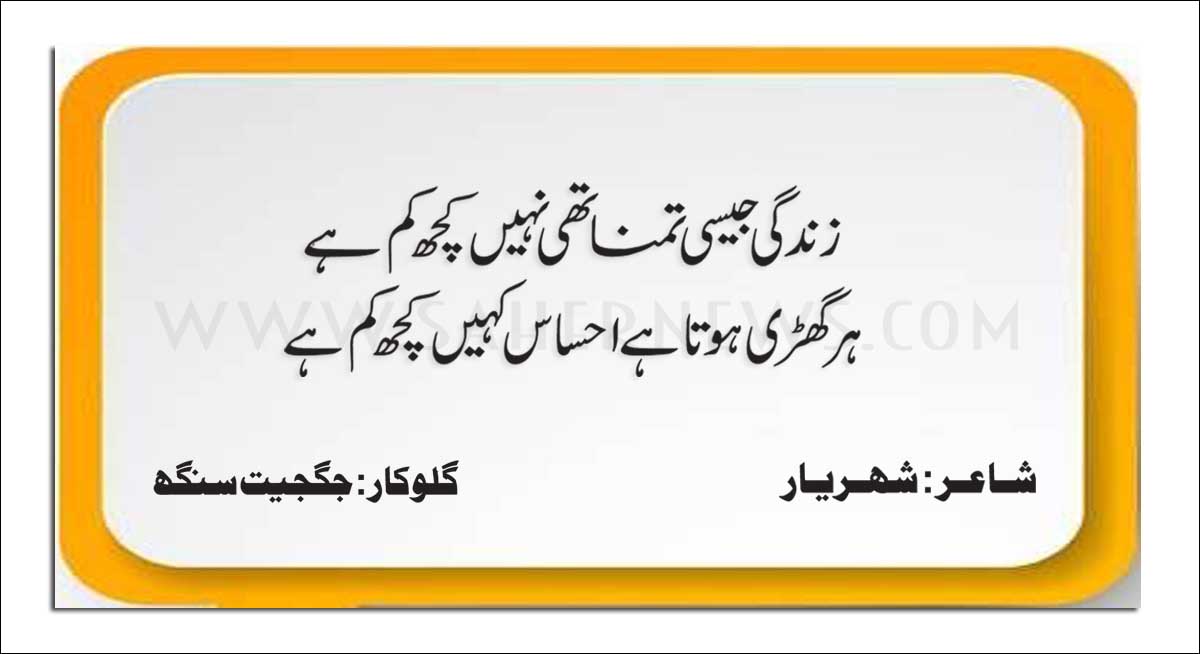 مشہور غزلیں اور ویڈیوسزندگی جیسی تمنا تھی نہیں کچھ کم ہے٭٭ہر گھڑی ہوتا ہے احساس کہیں کچھ کم ہے :غزل،شاعر : شہریار،گلوکار: جگجیت سنگھ 01/12/202102/12/2021 - by سحر نیوز … زندگی جیسی تمنا تھی نہیں کچھ کم ہے٭٭ہر گھڑی ہوتا ہے احساس کہیں کچھ کم ہے :غزل،شاعر : شہریار،گلوکار: جگجیت سنگھ Read More