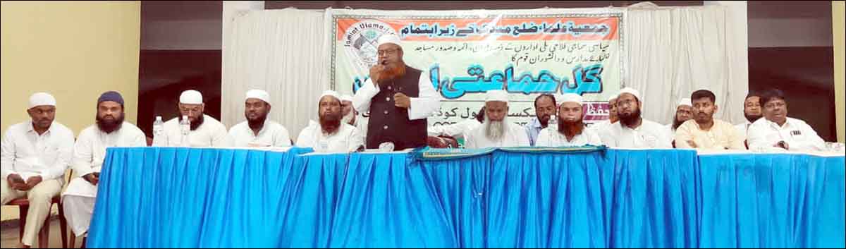 ان خیالات کا اظہار جمعیۃ علماءضلع میدک کے زیراہتمام حافظ خواجہ معیز الدین نائب قاضی میدک کی زیرنگرانی،مفتی محمد خواجہ شریف مظاہری صدر جمعیۃ علماء میدک کی زیرصدارت و حضرت مولانا جاوید علی حسامی کی سرپرستی اور سیاسی مذہبی و ملی قائدین کی رہبری میں میدک مستقر وضلع بھر میں شعور بیداری کے لیے مسلم میناریٹی فنکشن ہال اعظم پورہ میدک میں منعقدہ کل جماعتی اجلاس سے خطاب کرتے ہوئے مفتی عمران خان قاسمی صدر سٹی جمعیۃ علماء کاماریڈی نے مہمان خصوصی کی حیثیت سے کلیدی خطاب کرتے ہوئے کیا۔