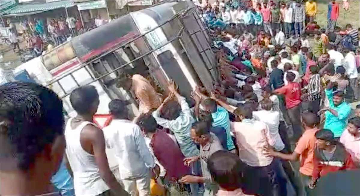 جائے حادثہ سے موصول ویڈیو میں دیکھا جاسکتا ہے کہ حادثہ کے بعد جائے حادثہ پر سینکڑوں عوام جمع ہوگئے تھے جنہوں نے حادثہ کے بعد الٹ جانے والی آرٹی سی بس کو اٹھاکر اسکے پہیوں پر کھڑا کردیا۔