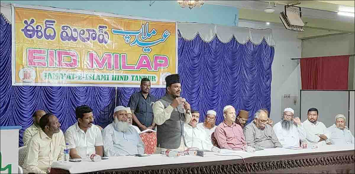 وہ گزشتہ رات ضلع وقارآباد کے تانڈور میں جماعت اسلامی ہند کے زیراہتمام صمدفنکشن پیالیس میں عبدالہادی پٹیل ناظم ضلع وقارآباد جماعت اسلامی ہند کی زیرصدارت منعقدہ عید ملاپ تقریب سے بحیثیت مہمان خصوصی خطاب کررہے تھے۔