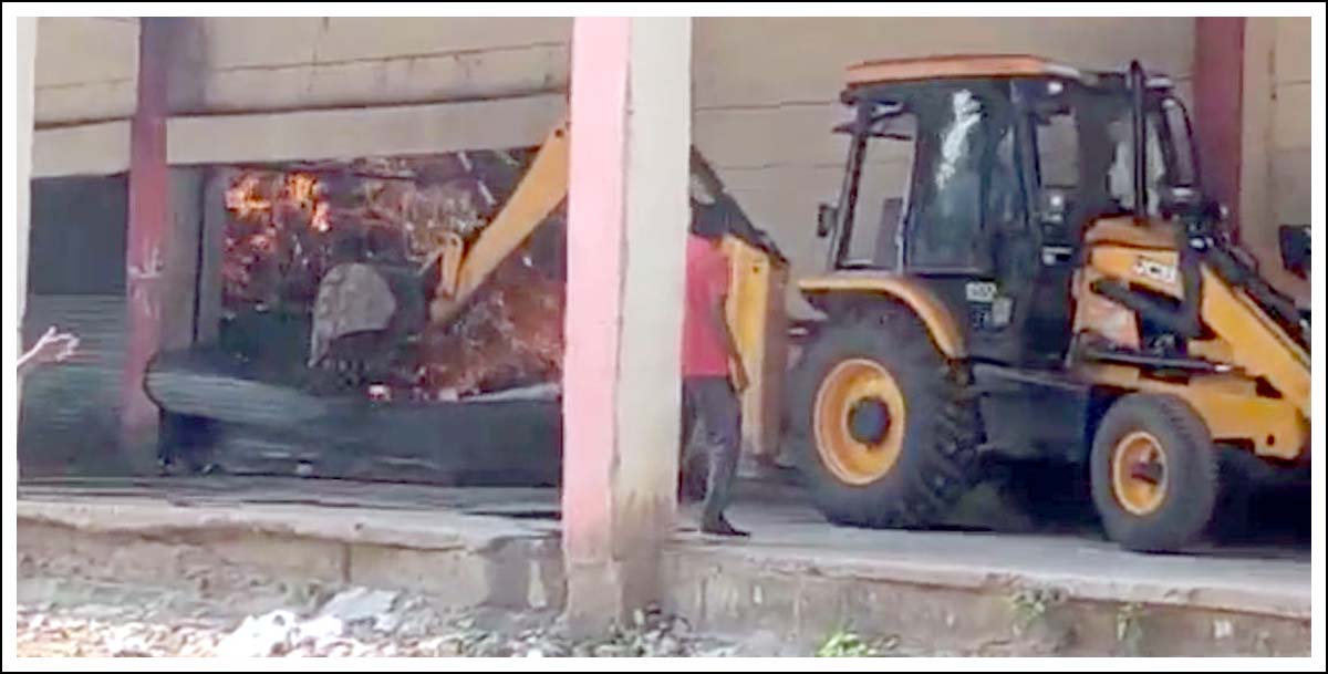 ” اوٹنور شراب ڈپو کی دیواروں کو آگ بجھانے کی غرض سے جے سی بی مشینوں کے ذریعہ توڑتے ہوئے دیکھا جاسکتا ہے ” (ویڈیو)