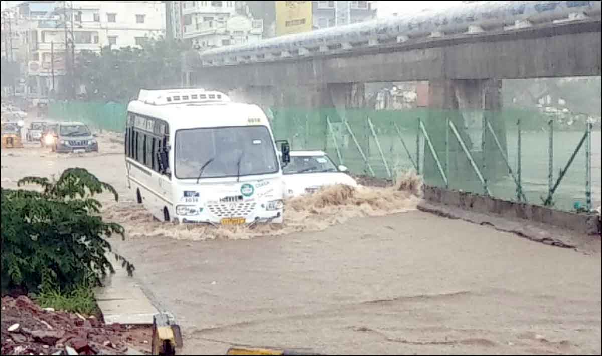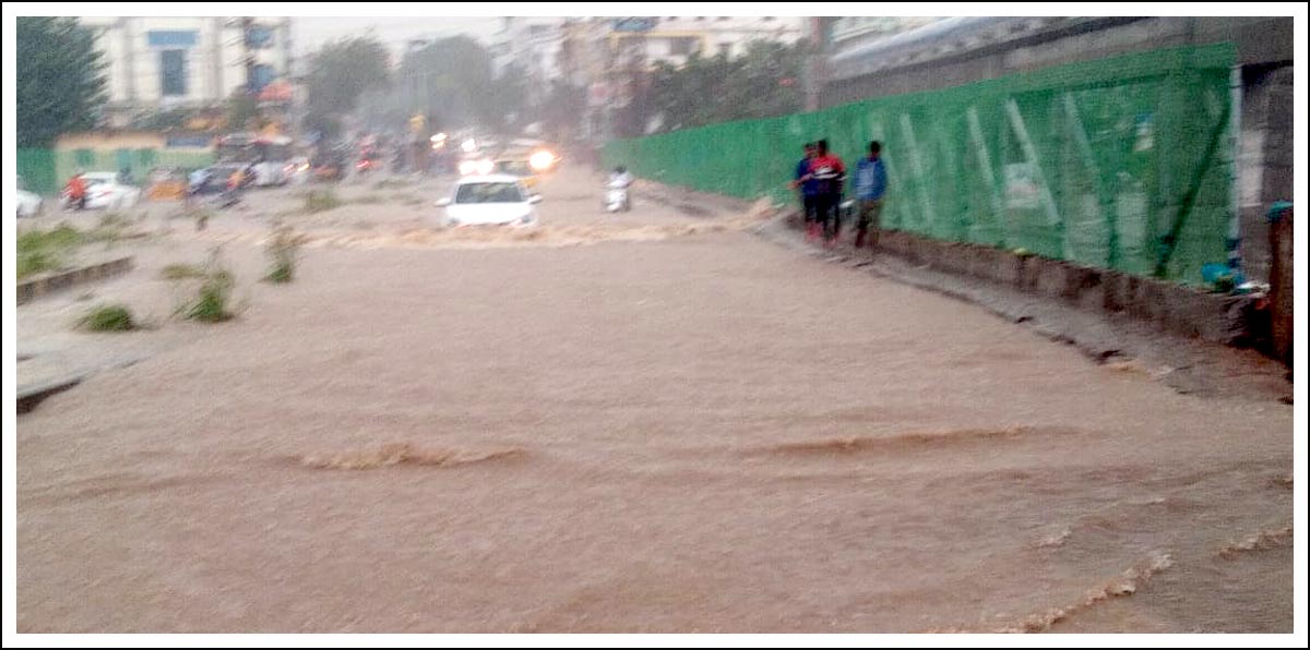 ” پرکاش نگر،بیگم پیٹ کا میٹرو اسٹیشن جہاں سیلابی پانی کے باعث ٹریفک نظام مفلوج ہوگیا تھا”