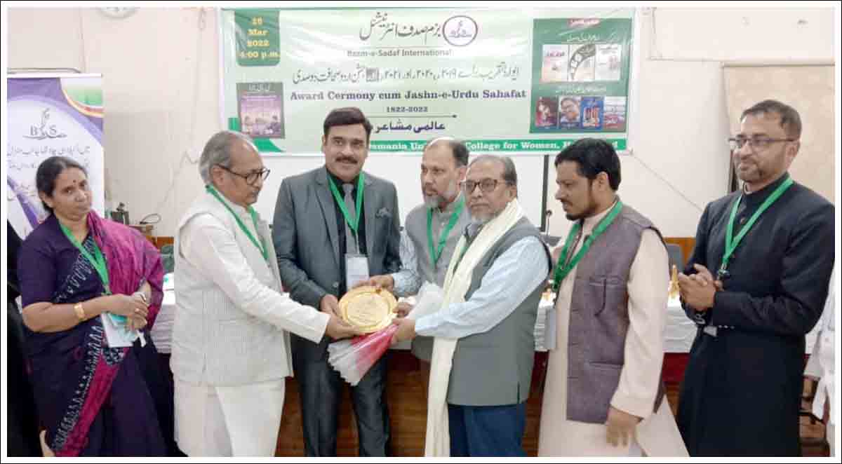 حیدرآباد کے سینئر صحافی جناب سجادالحسنین ایوارڈ حاصل کرتے ہوئے۔