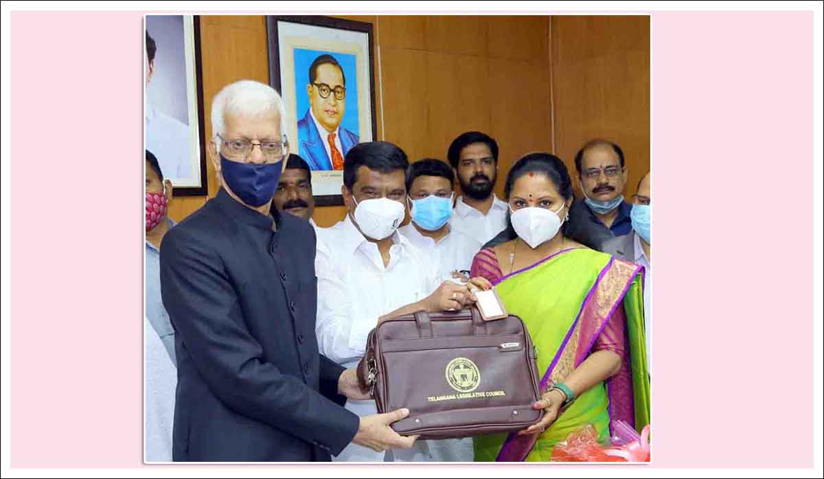 بعدازاں جناب سید امین الحسن جعفری اور ریاستی وزیر ویمولا پرشانت ریڈی نے محترمہ کے۔کویتا کو قانون ساز کونسل کے قواعد و ضوابط پر مشتمل کتاب اور شناختی کارڈ حوالے کرتے ہوئے انہیں مبارکباد پیش کی۔