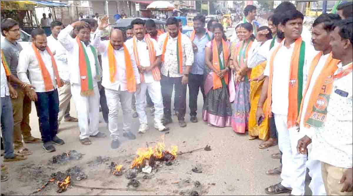 مخالف وزیراعظم و بی جے پی نعرے،علامتی پتلے نذرآتش، بی جے پی کا بھی احتجاج