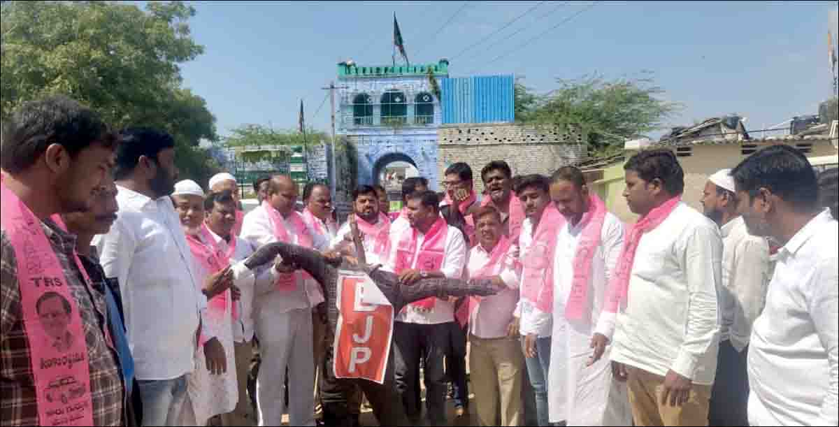 ارکان اسمبلی کی خریدی کی کوشش شرمناک، تانڈور میں ٹی آر ایس کا احتجاج