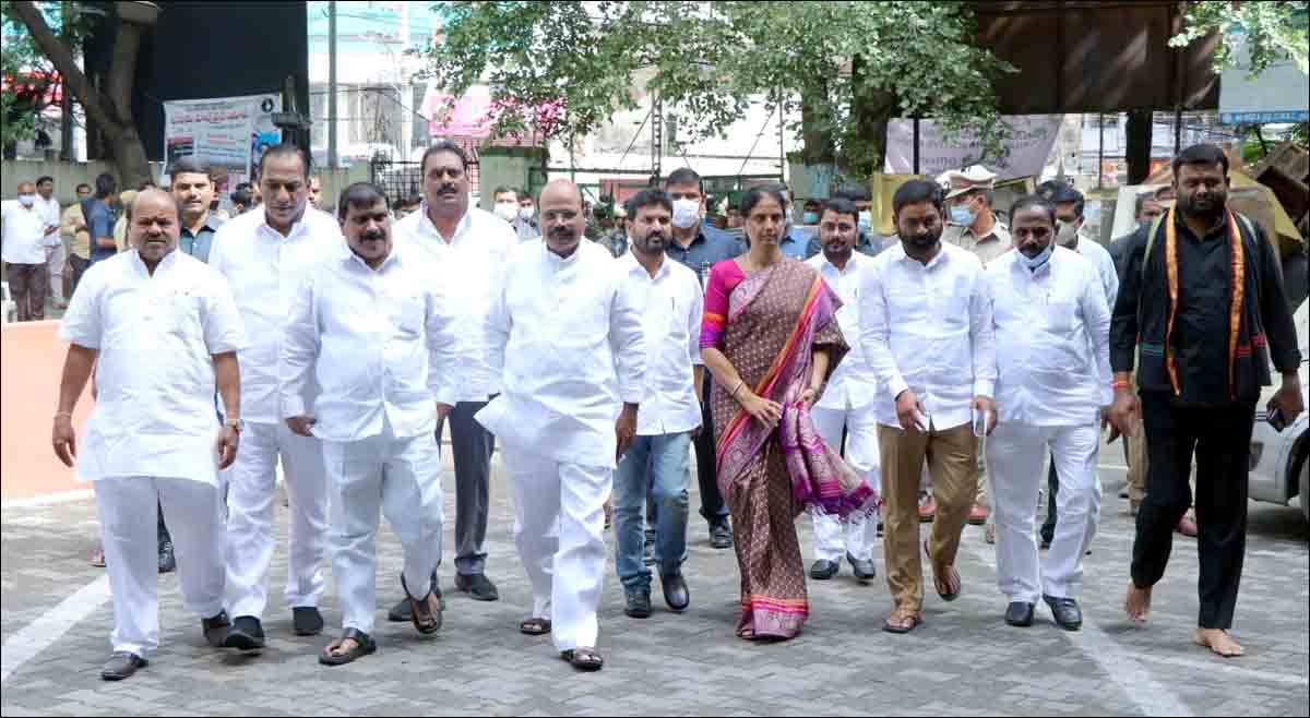 متحدہ ضلع رنگاریڈی کے ٹی آرایس ایم ایل سی امیدوار مہندرریڈی نے اپنا پرچہ نامزدگی داخل کیا ،وزیرتعلیم، ایم اے ایل اے تانڈور اور دیگر موجود