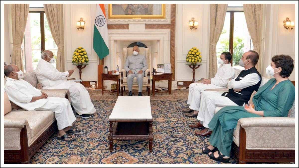 صدرجمہوریہ سے ملاقات کرنے والے وفد میں راہل گاندھی اور پرینکا گاندھی واڈرا کے علاوہ کانگریس کے سینئر قائدین غلام نبی آزاد، اے کے انٹونی ،ملیکارجن کھڑگے،کے سی وینوگوپال، غلام نبی آزاد اور ادھیر رنجن چودھری شامل تھے