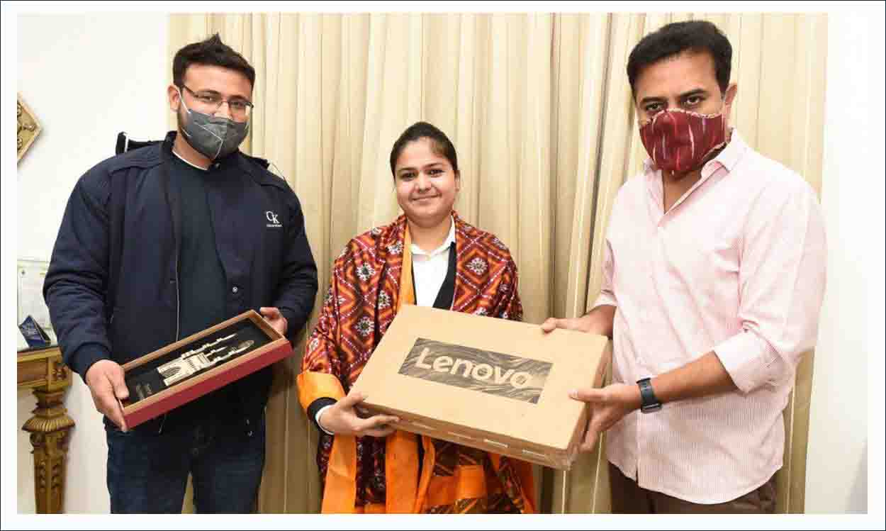 ریاستی وزیر کے ٹی آر نے ملیکا ہانڈا کی صلاحیتوں کی بھرپور ستائش کرتے ہوئے ان کی حوصلہ افزائی کی اور اس موقع پر کے ٹی آر نے اپنی جانب سے ملیکا ہانڈا کو 15 لاکھ روپئے کی مالی مدد فراہم کی اور ملیکا ہانڈا کو ایک خصوصی لیاپ ٹاپ بھی حوالے کیا۔