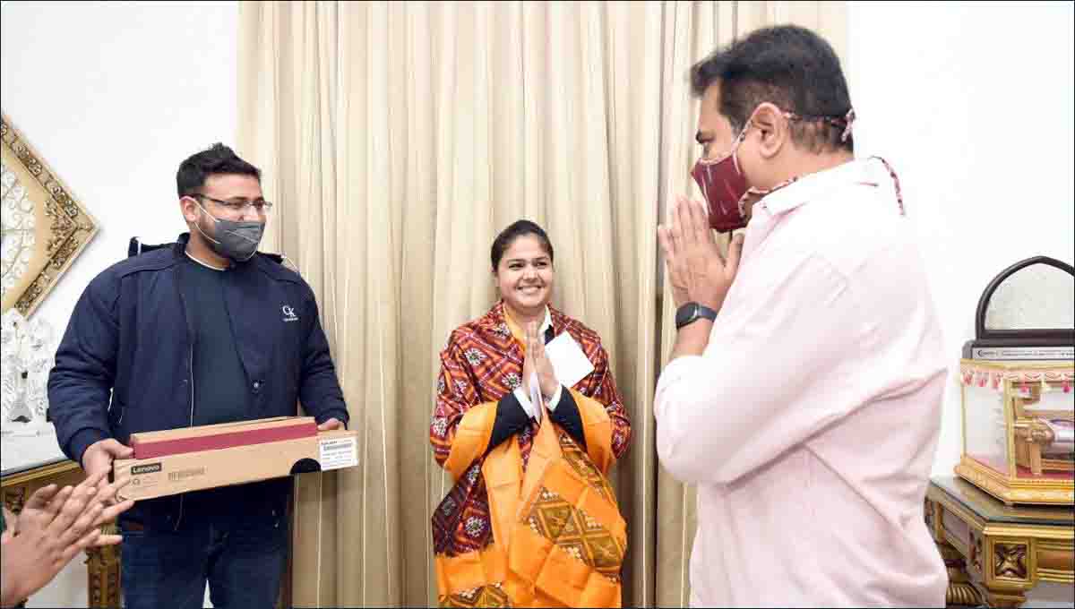 ساتھ ہی کے ٹی آر نے مرکزی وزیر کھیل انوراگ ٹھاکر کو اپنے اس ٹوئٹ میں ٹیاگ کرتے ہوئے نمائندگی کی ہے کہ اس ہونہار شطرنج کی کھلاڑی ملیکا ہانڈا کو سرکاری ملازمت فراہم کی جائے۔