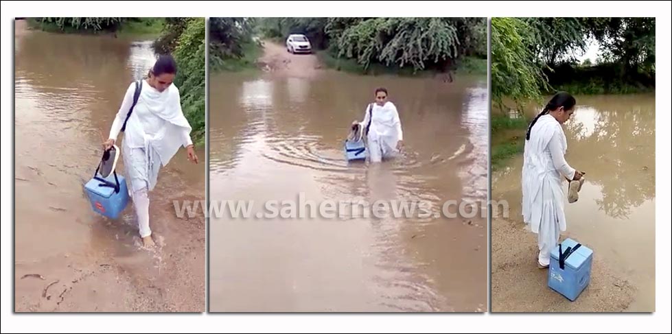 اس طرح وہ اس بریج کےپانی کو آسانی کے ساتھ عبور کرلیتی ہیں۔پھر ہیلتھ سنٹر تک پہنچ کر وہاں موجود ان کا انتظار کرنے والے دیہی عوام کو بوسٹر ڈوز دیتی ہیں۔واضح رہے کہ اس بریج پر انسان کے نصف حصہ تک پانی موجود تھا لیکن وہ ٹھاٹھیں مارکرنہیں بہہ رہا تھا۔