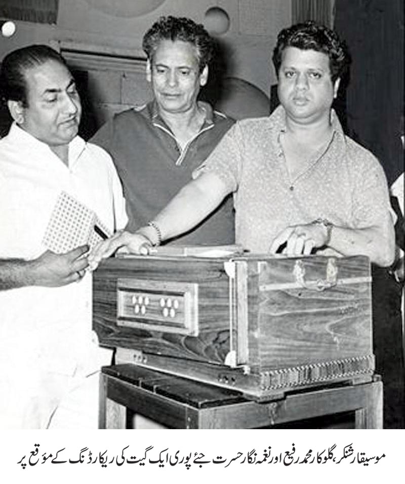 یہ میرا پریم پتر پڑھ کر کہ تم ناراض نہ ہونا، میں کا کرو رام مجھے بڈھا مل گیا ( سنگم )، بے دردی بالماں تجھکو میرا من یاد کرتا ہے،اجی روٹھ کر اب کہاں جائیے گا( فلم: آرزو )،غم اٹھانے کے لئے میں تو جئے جاؤنگا،کیا کیا نہ سہے ہم نے ستم آپ کی خاطر،رخ سے ذرا نقاب ہٹادو (میرے حضور )، گمنام ہے کوئی بدنام ہے کوئی ، ہمیں کالے ہیں تو کیا ہوا دل والے ہیں ( گمنام ) ،اپریل فول بنایا تو ان کو غصہ آیا،احسان میرے دل پہ تمہارا ہے دوستو(فلم : غبن) بدن پہ ستارے لپیٹے ہوئے، اکیلے اکیلے کہاں جارہے ہو ( فلم این ایوننگ ان پیرس)،تم نے پکارا اور ہم چلے آئے، جانے والوں ذرا ہوشیار (راج کمار)،سو سال پہلے مجھے تم سے پیار تھا (جب پیار کسی سے ہوتاہے) سے لیکرسن سائبا سن پیا ر کی دھن( رام تیری گنگا میلی )جیسے مقبول نغمے شامل ہیں۔