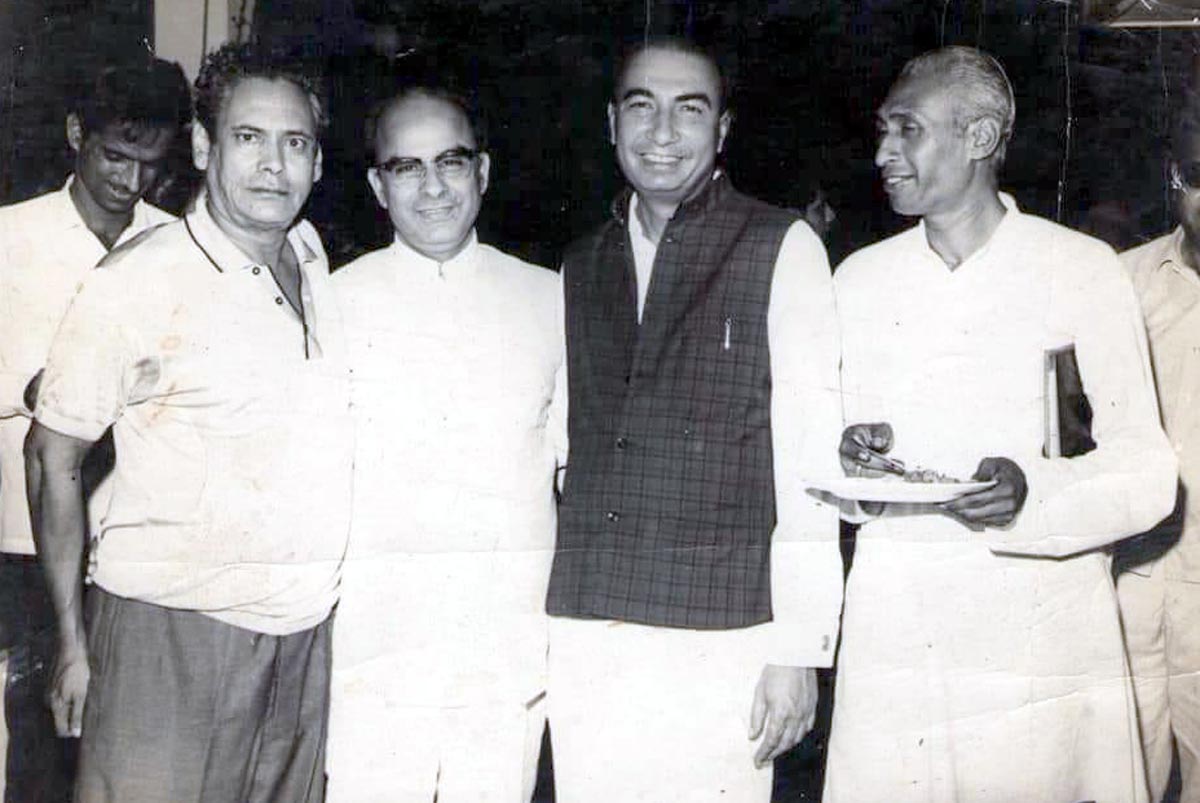 ترقی پسند و انقلابی شاعر و نغمہ نگار ساحر لدھیانوی اور حسرت جئے پوری کی ایک یادگار تصویر۔(تصویر بشکریہ :ڈاکٹر حسرت جئے پوری فیس بُک پیج)