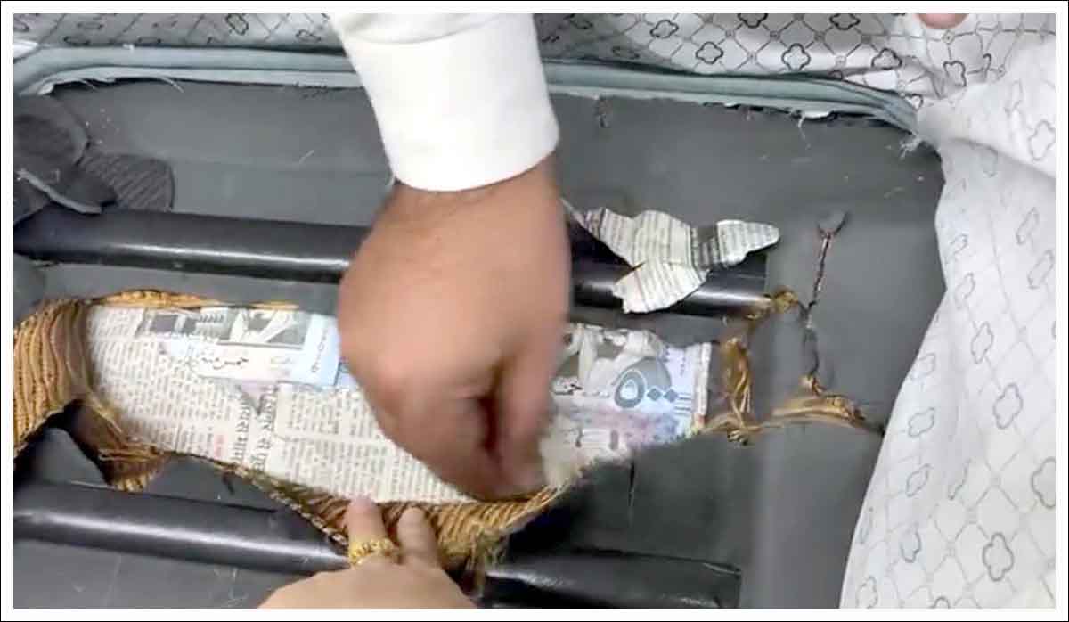 غیرقانونی طریقہ سے چھپاکر اتنی بڑی مقدار میں سعودی ریال لانے والے مسافر کو تحویل میں لے کر کسٹم عہدیداروں کے حوالے کردیا گیا۔