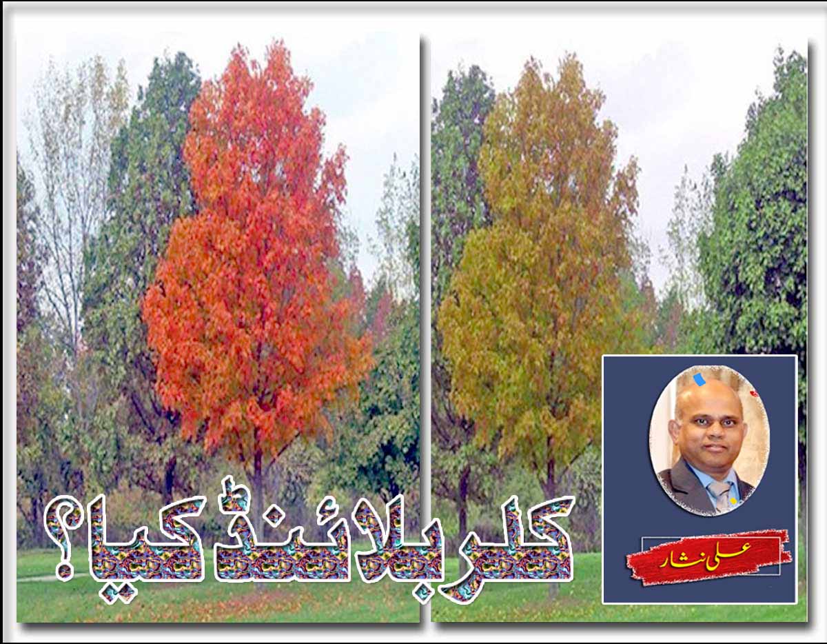 کچھ لوگ رنگ کے اندھے color blind ہوتے ہیں اس کا یہ مطلب نہیں کہ وہ عقل کے بھی اندھے ہوتے ہیں بس وہ رنگ نہیں دیکھ سکتے بلکہ کچھ خاص قسم کے رنگوں میں تمیز سے عاری ہوتے ہیں. جیسے سرخ و سبز یا پیلے اور نیلے رنگ کے درمیان فرق نہیں کر پاتے بہت ہی کم تعداد میں ایسے بھی ہیں جن کے لئے دنیا صرف بلیک اینڈ وائٹ ہے۔