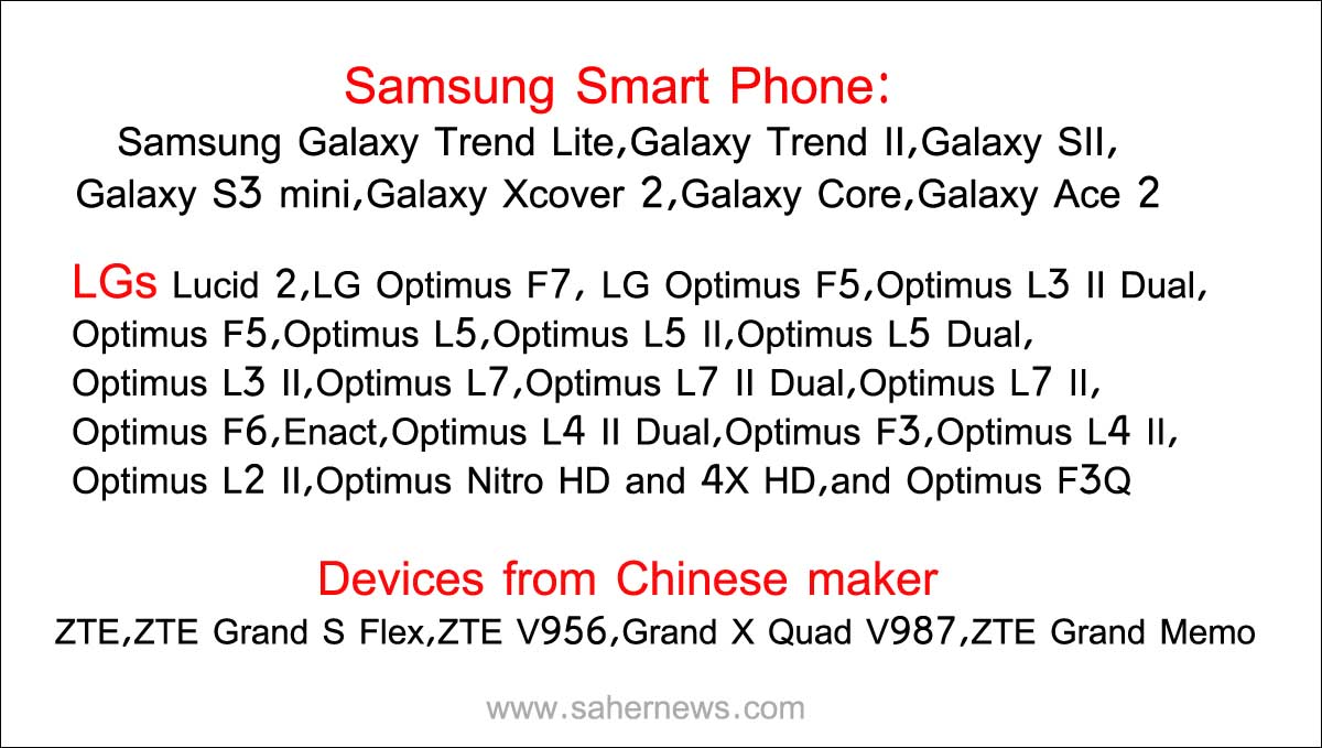 واٹس ایپ کی جانب سے جاری کردہ اینڈرائیڈ اسمارٹ فونس کی فہرست میں Samsung، LG، ZTE، Huawei، Sony، Alcatel اور دیگر اسمارٹ فونس شامل ہیں۔