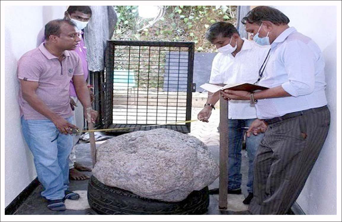 بیضوی پتھر کا کل وزن 500 کلوگرام سے زائد ہے جس پر لگ بھگ 25 لاکھ قیراط کے قیمتی پتھر جڑے ہوئےہیں۔مقامی افراد کے مطابق یہ پتھر رتنا پورا کے علاقے میں ایک مکان کے عقب میں کنویں کی کھدوائی کے دوران برآمد ہوا ہے۔ یاد رہے کہ یہ علاقہ پہلے ہی نیلم کے ذخائر کی وجہ سے عالمی شہرت حامل ہے۔